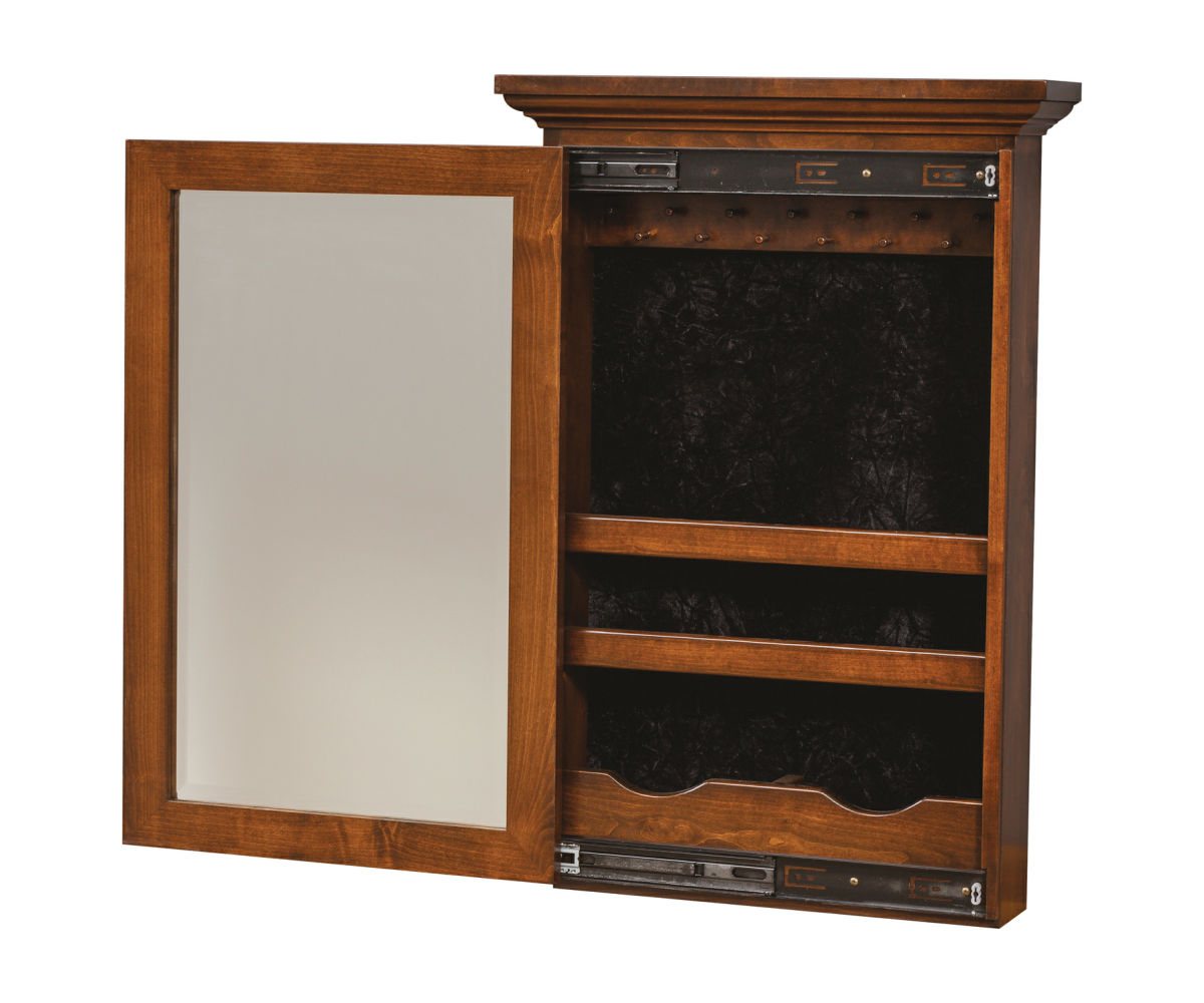 • Sliding mirror to reveal jewelry storage