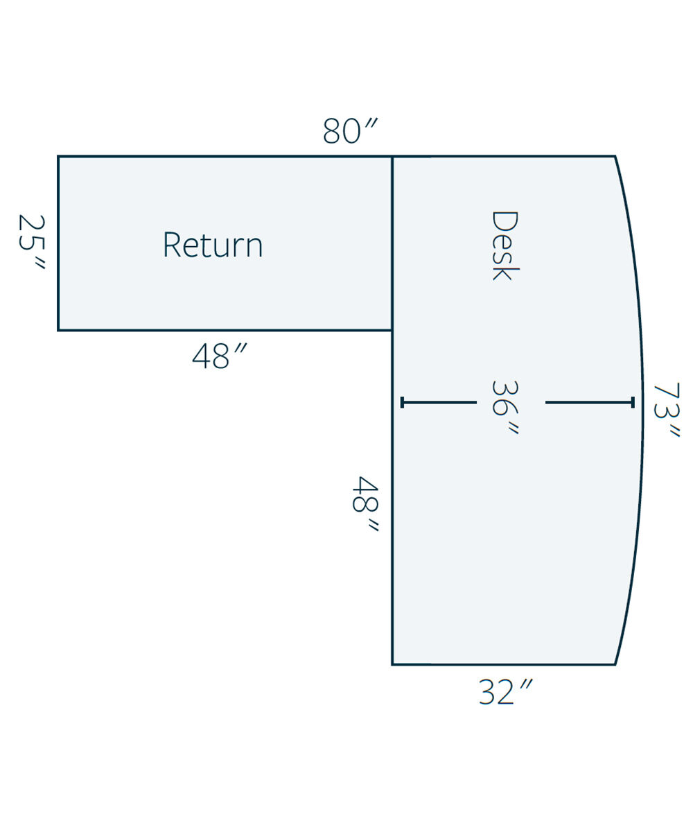 L Return: 80″W x 25″D x 78″H