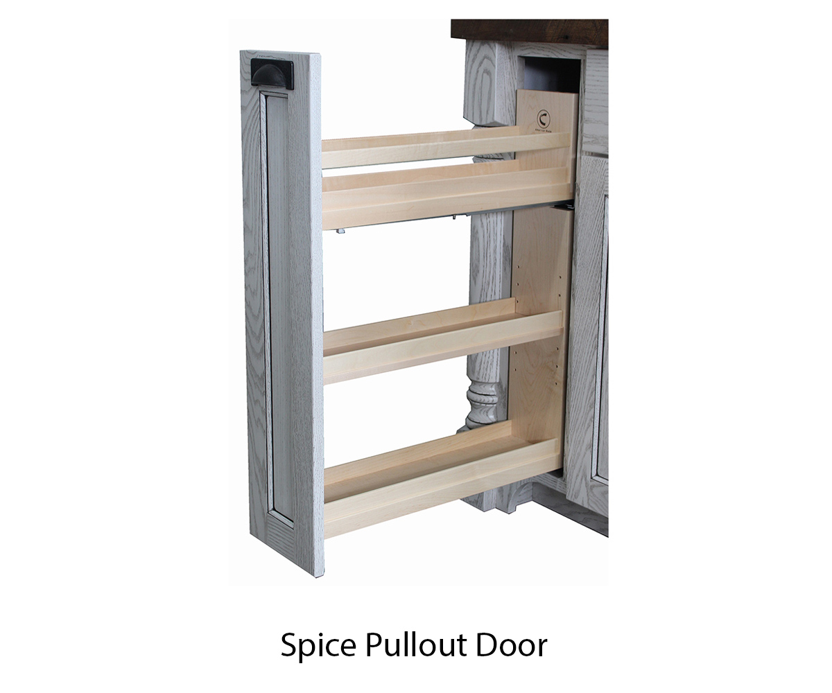 • Spice pullout behind left tall door
