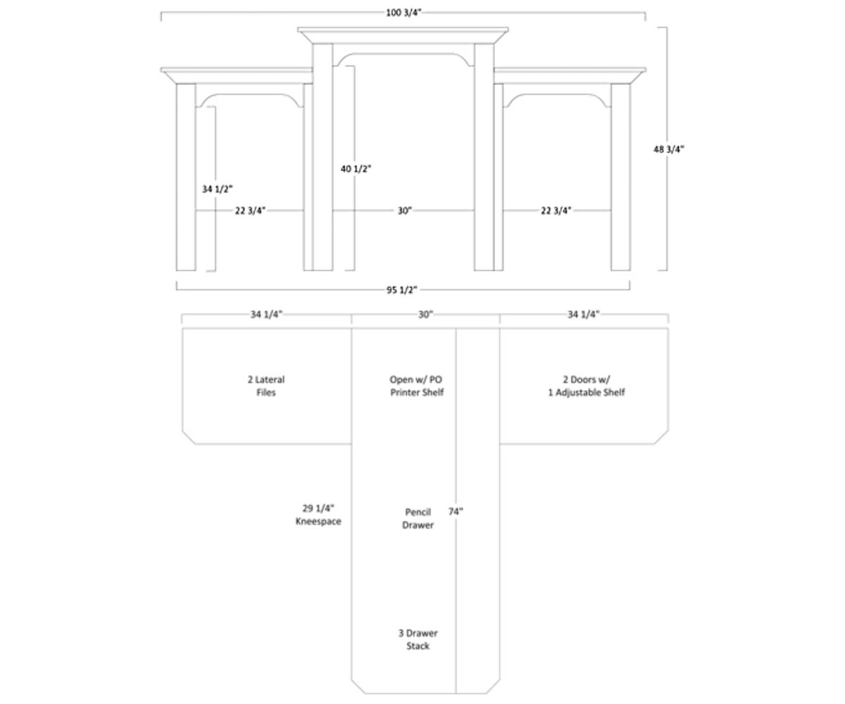 Desk: 98″W x 74″D x 30½”H